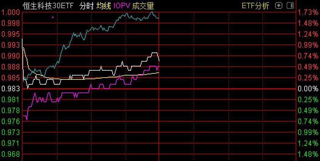 今日市场迎来了4只ETF同日上市,其中3只均跟踪恒生科技指数,1只跟踪创业板300。截至午间收盘,博时恒生科技ETF、华夏恒生科技ETF、易方达恒生科技ETF和天弘创业板300ETF分别上涨了0.5%、0.91%、0.61%和1.49%。