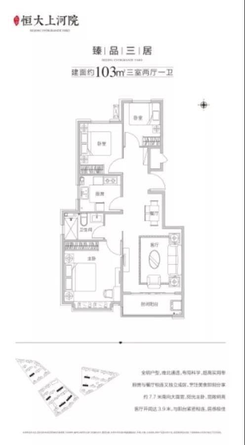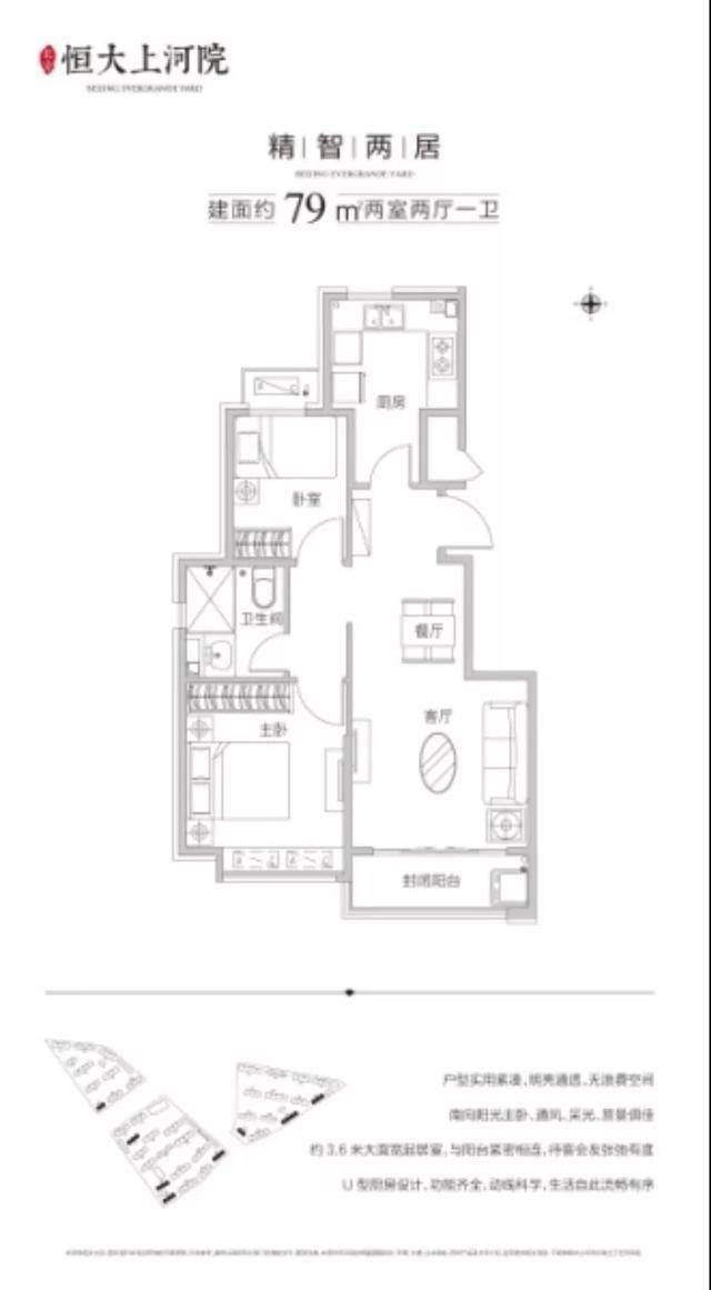 主力户型:2居(建面79㎡) 3居(建面97㎡) 3居(建面103㎡)