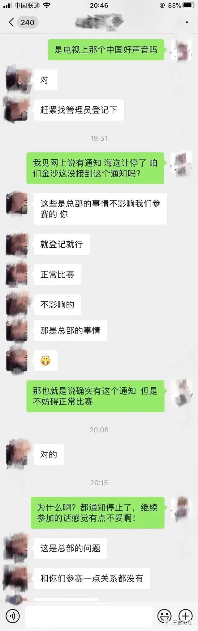 贵州赛区称5月中旬海选就已经结束,当三言财经问及是否接到相关通知时,对方没有正面回答,只是称海选已经结束,现在是晋级赛了。