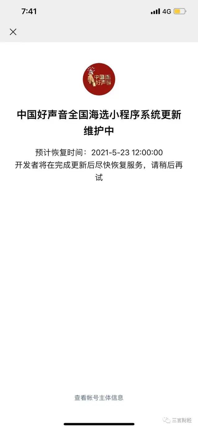 在《中国好声音》官方微博和全国海选小程序上均出现异常。