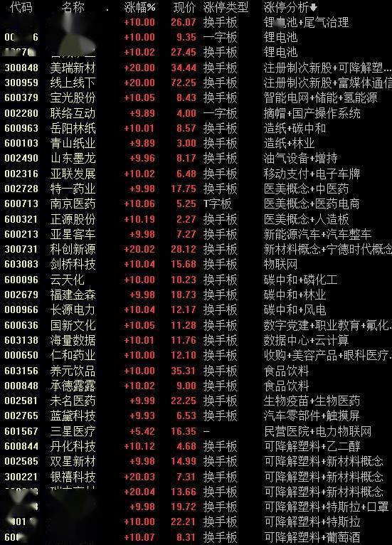 个股异动方面,受益于“十四五”塑料污染治理顶层设计正在酝酿的消息,可降解塑料概念股全线走高,银禧科技、美瑞新材、瑞丰高材、丹化科技、莫高股份等约十股集体涨停;生态环境部表示已完成上线碳排放权交易模拟测试和真实资金测试,碳中和概念再受追捧,岳阳林纸、福建金森、长源电力、云天化等多股涨停;水产养殖板块持续上行,大湖股份封板,獐子岛盘中触及涨停。