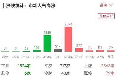 据同花顺数据显示,今日涨停家数79家,跌停6家。两市涨停板家数较上个交易日增加,跌停板家数与上个交易日减少。