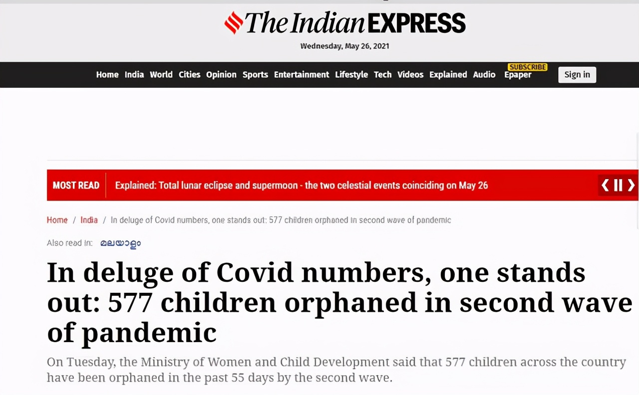 报道称,高级官员透露,在收养新冠孤儿的信息涌入社交媒体后,妇女和儿童发展部开始调查新冠孤儿的问题。一名官员称,“我们一直在与所有邦接触,并要求他们确定当地的新冠孤儿(情况)。我们从收集到的数据中确定,目前有577名……”