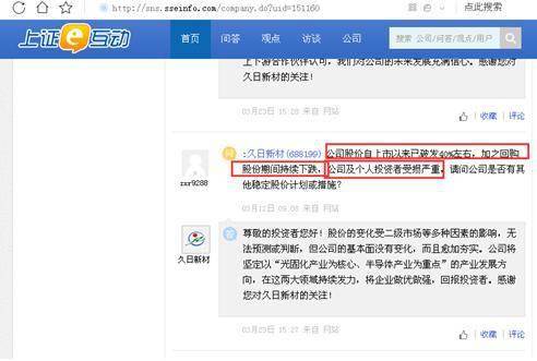 有投资者3月12日在上证e互动上提问“公司股价自上市以来已破发40%左右,加之回购股份期间持续下跌,公司及个人投资者受损严重,请问公司是否有其他稳定股价计划或措施?”