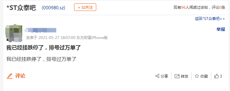 有网友表示:“已经挂跌停了,排号过万单了”。