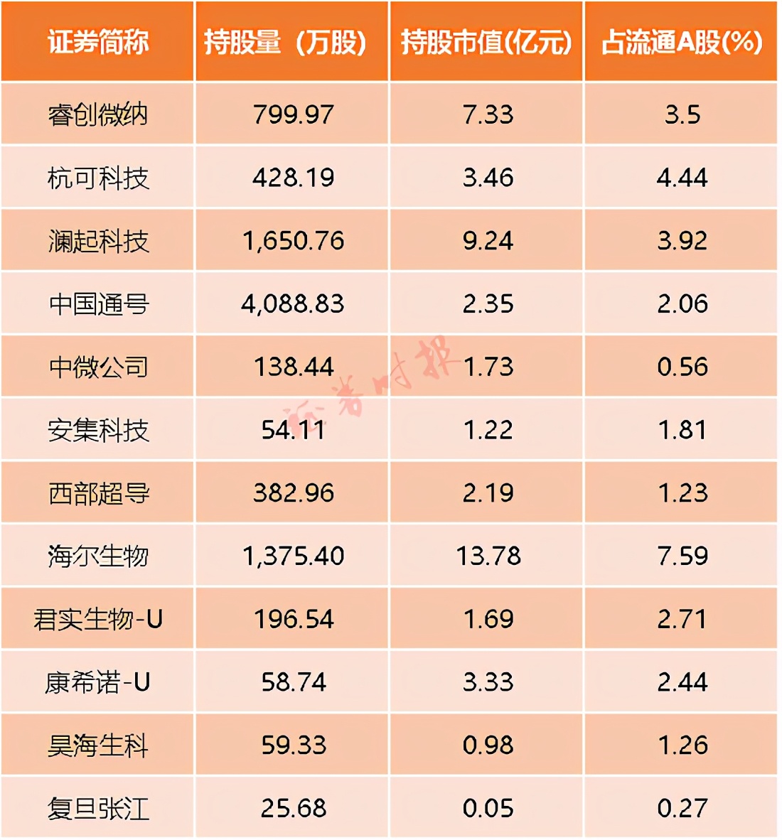 而从持股占流通股比例来看,海尔生物也是目前最高者,数据显示,截至目前,北向资金通过沪股通持有海尔生物1,375.40万股,占流通股比例的7.59%。杭可科技、澜起科技、睿创微纳等持股占比也不低。