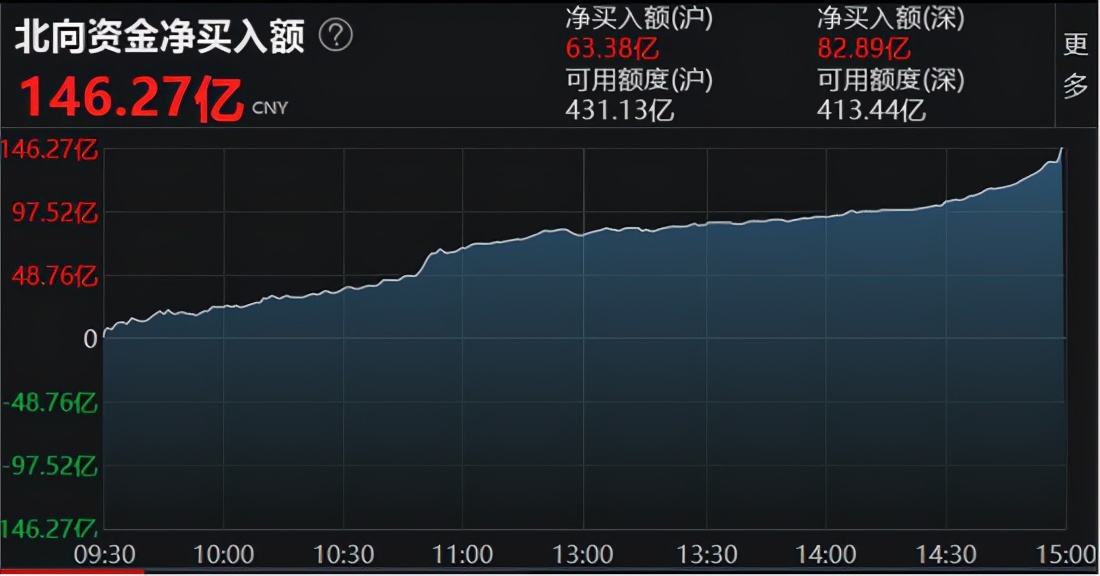 记者在Wind行情中看到,14:57分时,北向资金净流入额停留在135.48亿元,收盘后净流入额为146.27亿元,3分钟时间北向资金“涌入”10.79亿元。