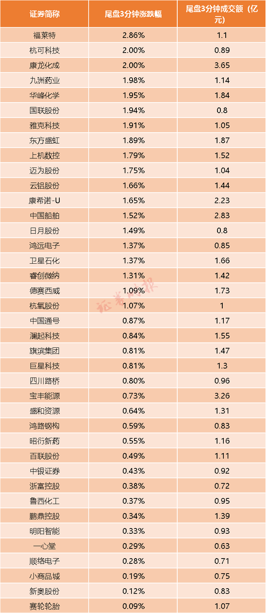 而在成交额方面,新增纳入的个股尾盘3分钟成交额也明显增加,其中,康龙化成、宝丰能源(15.200, 0.29, 1.95%)等成交额更是超过3亿元。