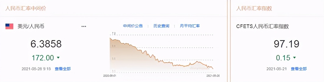 5月27日,人民币(6.3833, -0.0075, -0.12%)中间价报6.3858,上调172点,创2018年5月24日以来新高,在岸人民币上一交易日收报6.3758。