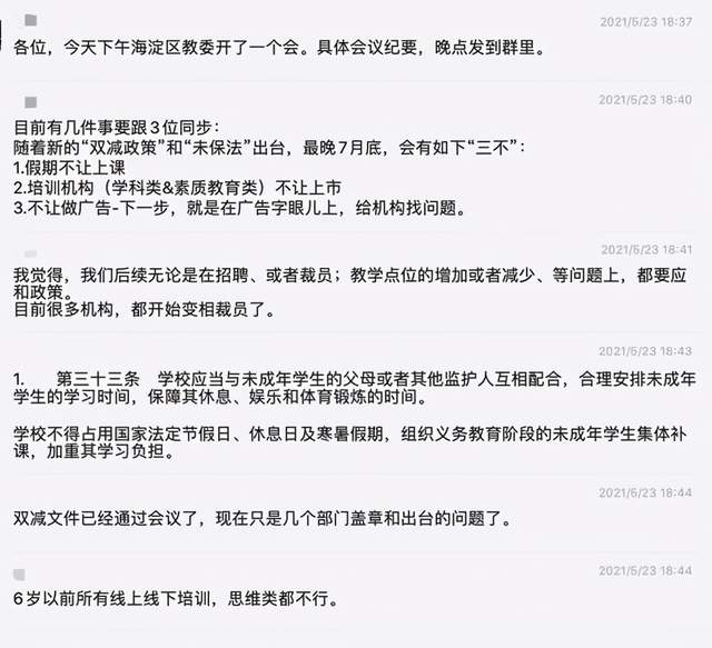 本周一,一张‘假期不许开课’、‘培训机构不上市’、‘不许打广告’的截图在业内流传。当天中概股集体下跌,一天内中概股教育头部企业总计蒸发近79亿美元,折合人民币509亿元。