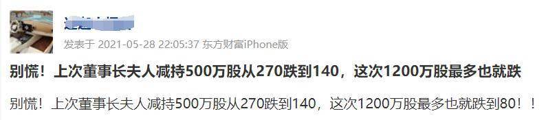 更有网友表示,上次董事长夫人减持500万股从270跌到140,这次1200万股最多也就跌到80!!