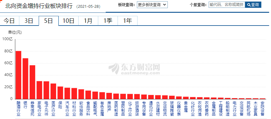 分行业看,从净买入金额来看,北向资金增持了36个行业,其中酿酒行业居首,净买入金额达80亿元,紧随其后的是银行和券商信托板块,净买入金额均超40亿元。