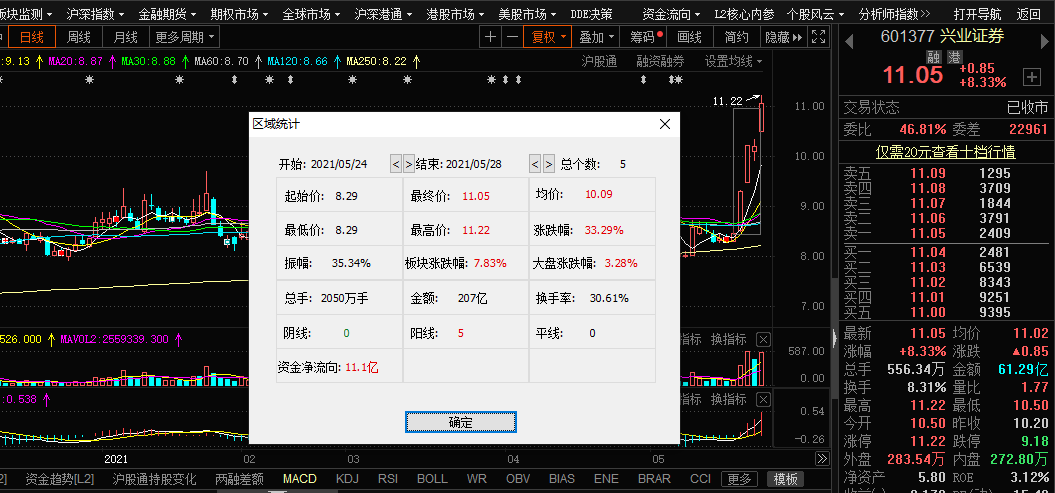 增仓比例超2%个股中,兴业证券为市场热门券商股,该股周五一度涨停,本周累计涨幅为33%。