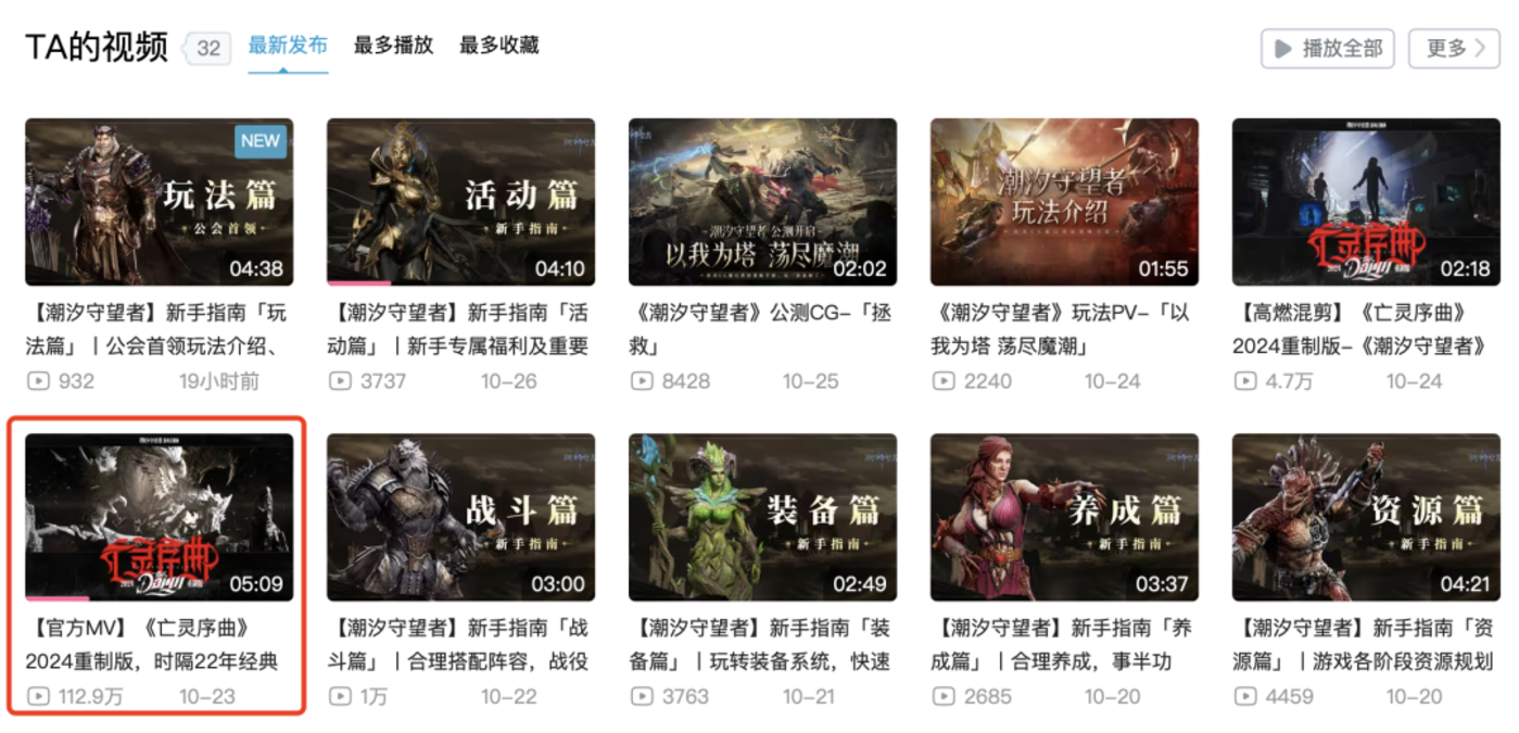 相反,《潮汐守望者》通过重制《魔兽争霸3》中亡灵族的过场动画音乐《亡灵序曲》,并制作了一部MV,吸引了大批量魔兽玩家的关注,并在传播侧有着不错的效果。