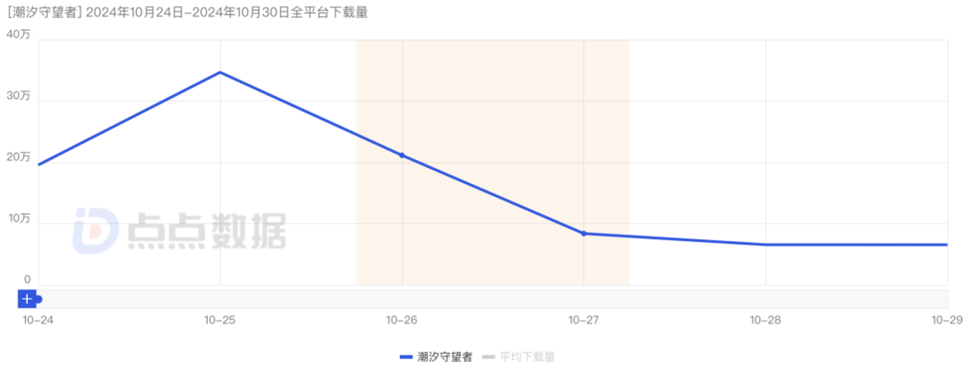 点点数据显示,截止至10月29日,《潮汐守望者》上线5天iOS平台的下载总量达到了97万次。