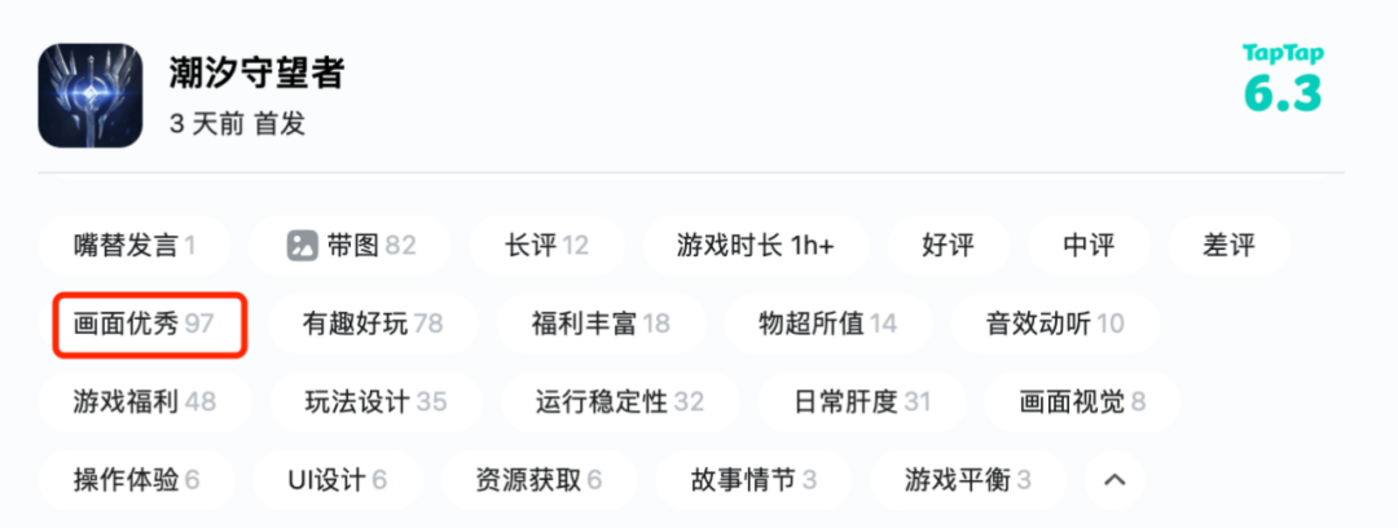 但现在的问题是,《潮汐守望者》目前在玩家群体中的口碑并不佳,不利于对泛游戏用户的获取。好在目前是刚处于上线初期,且产品在畅销榜仍在不断攀升。