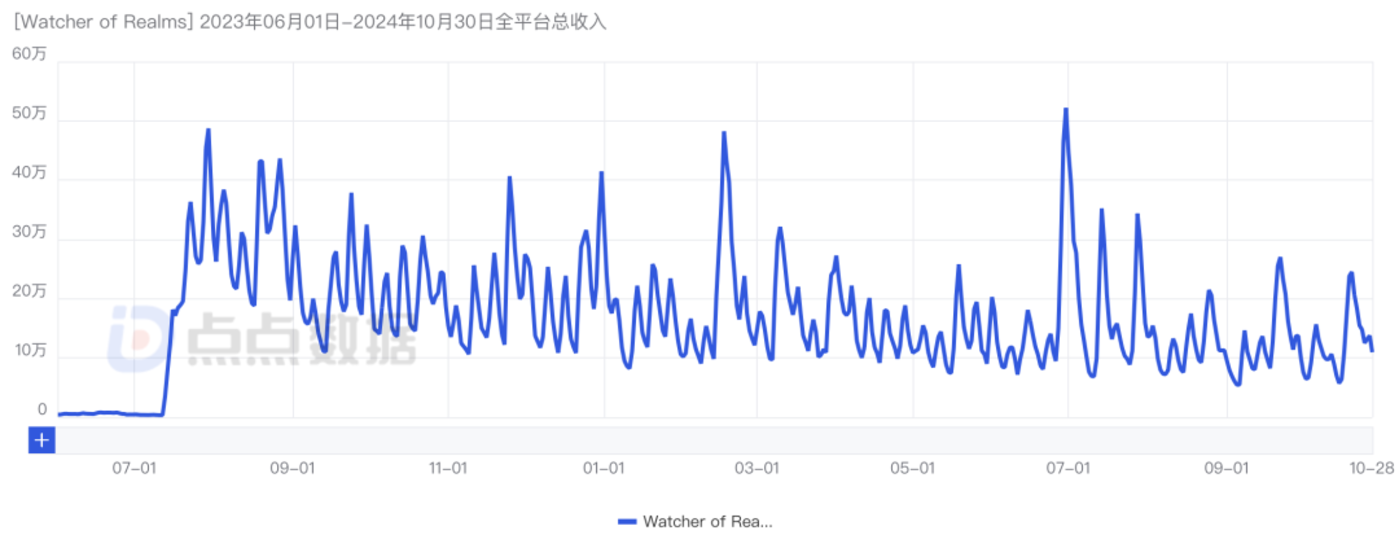 海外收入方面,点点数据显示,截止至10月28日,《潮汐守望者》海外版《Watcher of Realms》双端上线至今预估收入超6.1亿元(扣除平台分成)。