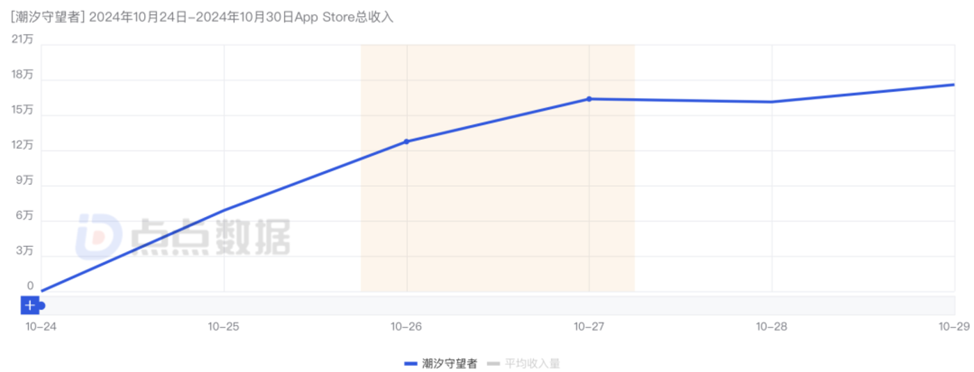 点点数据显示,截止至10月29日,《潮汐守望者》上线5天iOS苹果预估收入超490万元(扣除平台分成)。