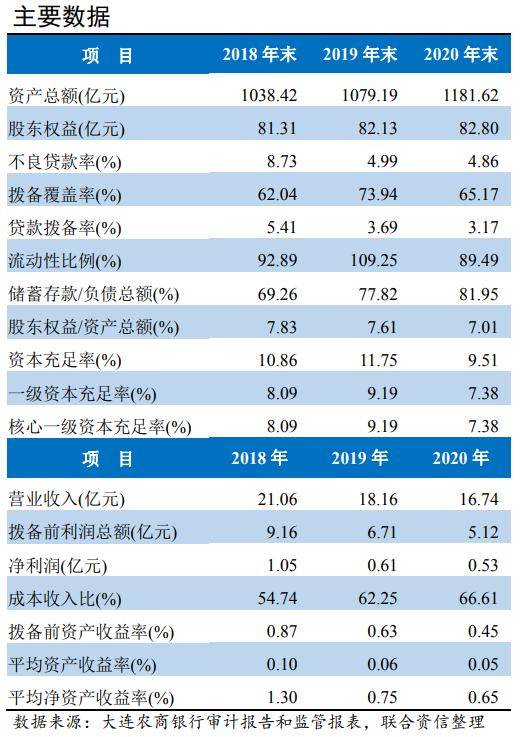 联合资信指出,未来,大连农商银行将继续坚持服务“三农”、服务中小、服务社区的市场定位,差异化、特色化经营并加大对当地实体经济发展的支持力度。2021 年上半年,大连农商银行不良贷款规模和不良贷款率实现双降,资产质量有所改善。另一方面,大连农商银行抵债资产对资本充足率所带来的影响需关注。