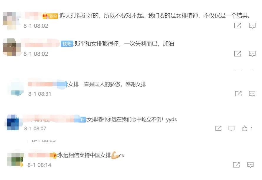 赛后网友们也在社交媒体上留言安慰郎平以及中国女排的姑娘们,“女排永远是国人的骄傲”,“女排精神一直都在”。