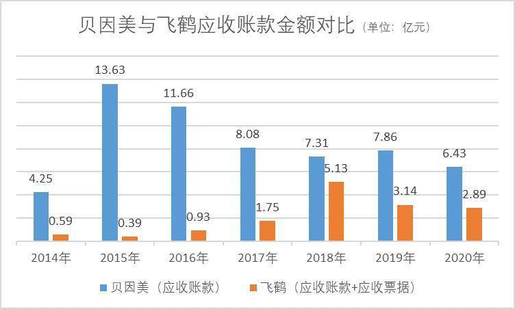 历史数据显示,贝因美于2015年四季度采取了极为激进的赊销政策,将客户授信总金额由平时的0.5亿元提高至10.3亿元,截至2015年12月31日,2015年12月实现对授信客户的销售收入8.77 亿元,形成应收账款 10.26 亿元,当年营收账款达13.63亿元。随后的时间里,贝因美一直都在为降低应收账款水平而努力。截至2020年底,贝因美的应收账款数字已降为6.43亿元。