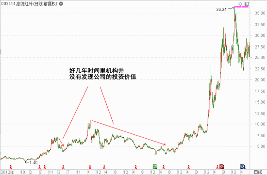 举个例子,在2013年上半年,牛眼君即研究发现高德红外(27.420,0.56, 2.08%)的研发实力(红外热像仪)出众,其打破了西方国家技术的垄断,但是由于机构资金一直未认识到发展潜力,好几年过去了,直到去年疫情时,大家才发现其价值,最终走出10倍行情。