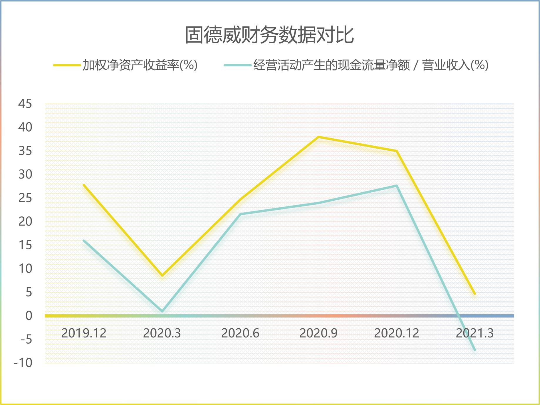 从固德威一季度财务数据看,有两项数据变化较大,加权净资产收益率4.69%,同比减少3.89个百分点。经营活动产生的现金流量净额/营业收入-7.16%,从固德威一季报数据看,现金流大幅减少主要原因是其经营规模扩大,支付给职工及为职工支付的现金增加所致。