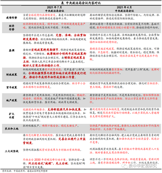 我们认为本次会议对整体经济形势的判断延续了4月的会议,并未发生明显变化。4月会议指出“要辩证看待一季度经济数据,当前经济恢复不均衡、基础不稳固”,“要用好稳增长压力较小的窗口期”,这意味着当时也看到了稳增长的压力,只是稳增长的压力较小而已;同时也看到了经济结构分化的问题,“恢复不均衡”、“基础不稳固”。
