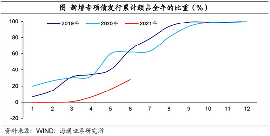 上半年稳增长压力较小,地方专项债的发行相对偏慢,基建支出增速也低于去年同期。而下半年经济可能面临进一步下行压力,因此会议提出“合理把握预算内投资和地方政府债券发行进度,推动今年底明年初形成实物工作量”,我们认为,接下来专项债的发行或将提速,对经济进行支持。