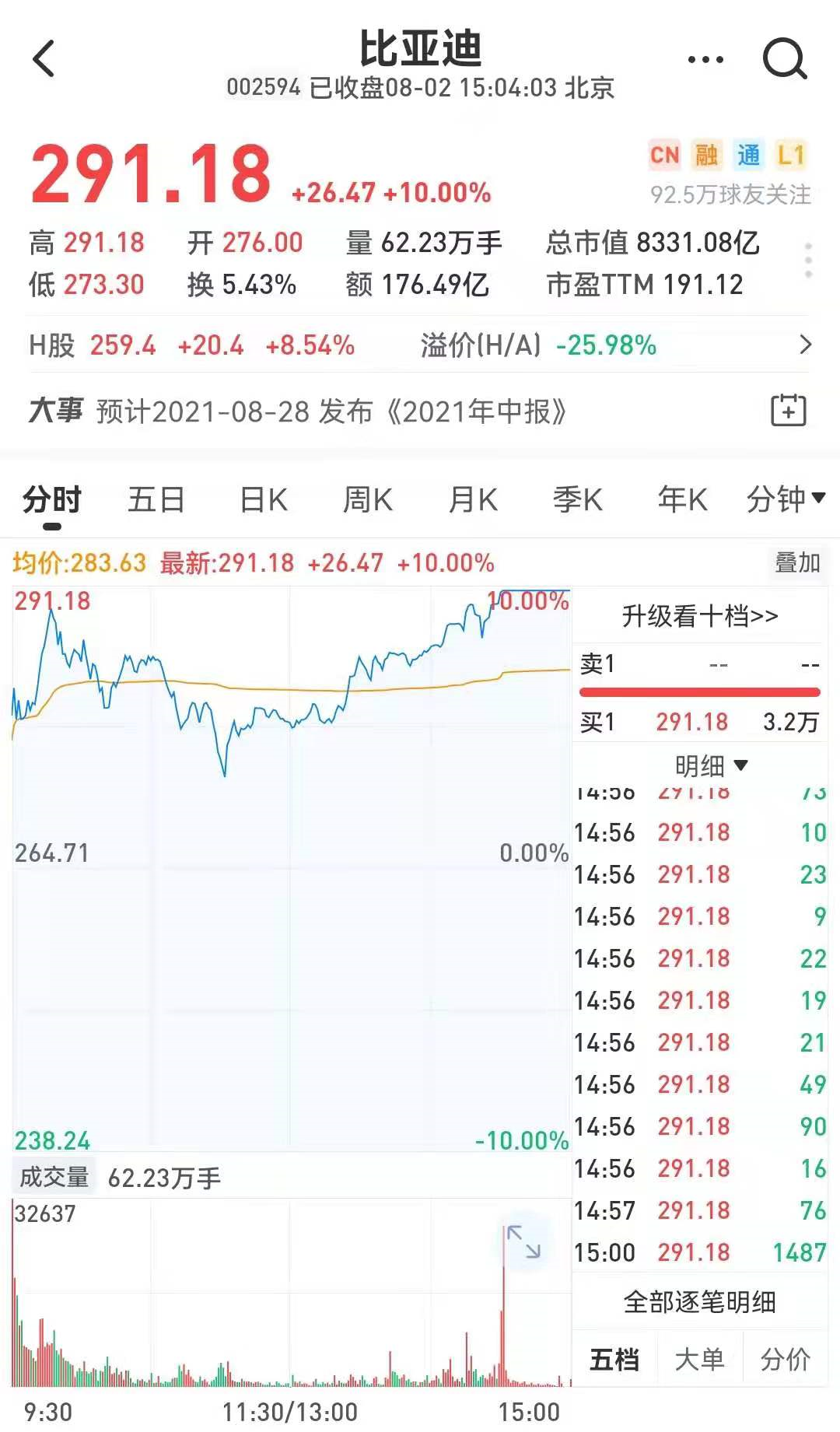 花旗表示,将比亚迪H股目标价上调25%、A股目标价上调18%,预计公司三季度将宣布大规模的外部磷酸铁锂电池出货计划。分析师Jeff Chung等在报告中指出,预计下半年电动车业务毛利将较上半年大幅回升,将比亚迪H股目标价由327港元上调至410港元,A股目标价由299元人民币上调至352元。