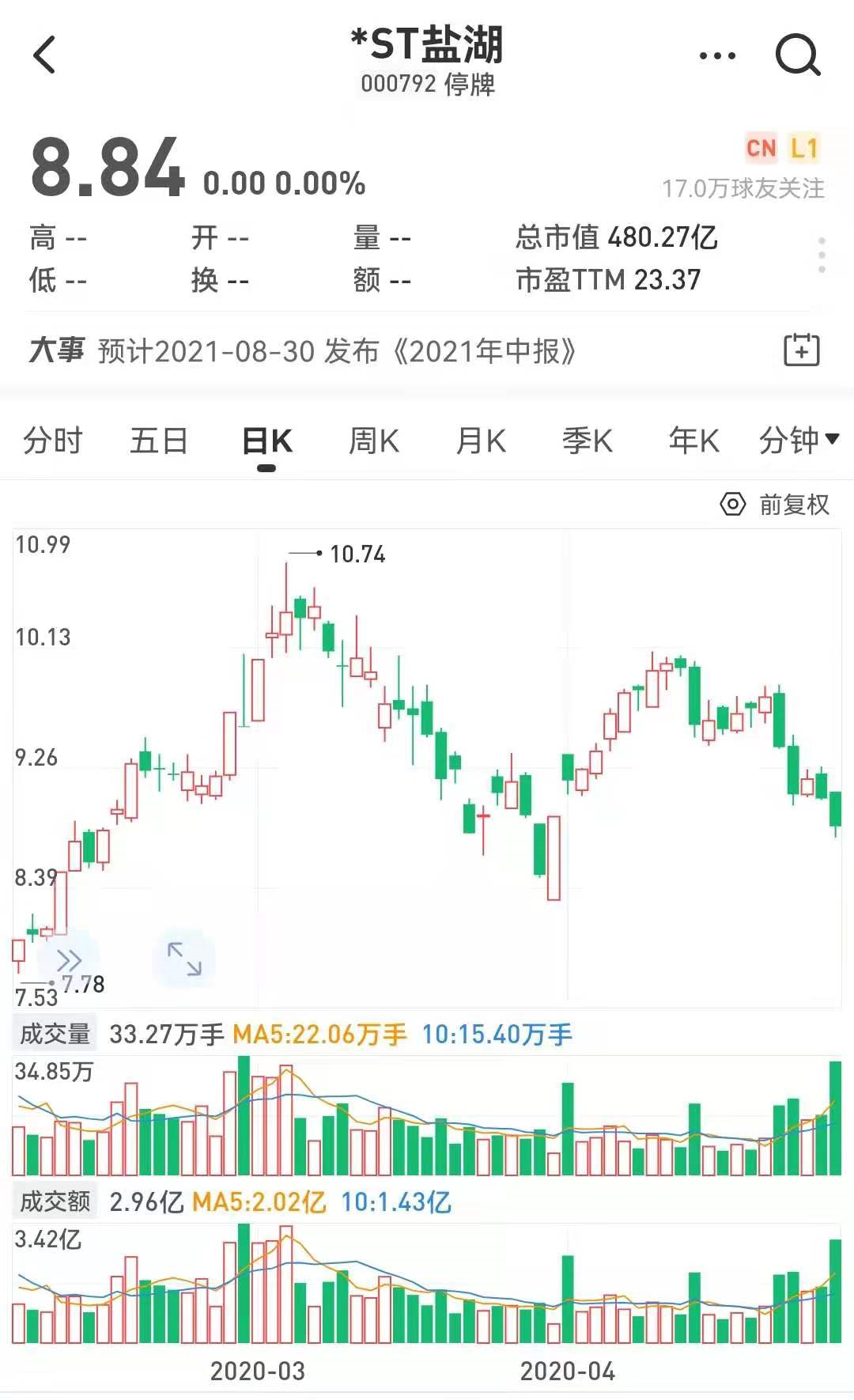 这一消息牵动着众多投资者的心。数据显示,截至2021年一季度末,*ST盐湖有5.7万户股东。有球友表示:等一朵花开,我用了3年。