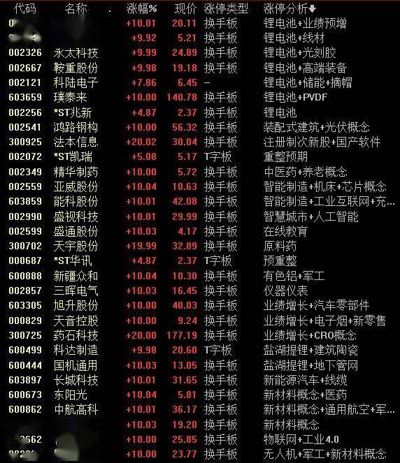 个股异动方面,锂电池板块活跃,中国电研、江特电机等涨停;汽车行业走强,海马汽车、江淮汽车、比亚迪等涨停;储能板块受关注,吉电股份、英维克等涨停;白酒板块低开高走,酒鬼酒、皇台酒业涨停;航天航空板块发力,中航高科、航发科技、中航重机等涨停;券商板块异动,东方证券直线拉升封板。