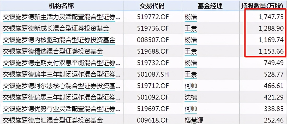交银施罗德杨浩和王崇管理的产品重仓持有顺丰控股。杨浩持有超过3600万股,王崇持有近3000万股。杨浩管理的交银施罗德新生活力在2020四季度对顺丰持仓增加119万股。