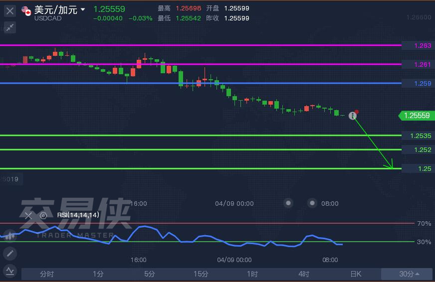 美元兑加元在转折点1.2590下方,存在下行压力,支撑位为1.2535和1.2520;若美元兑加元回升至1.2590上方,则看涨,阻力位为1.2610和1.2630。