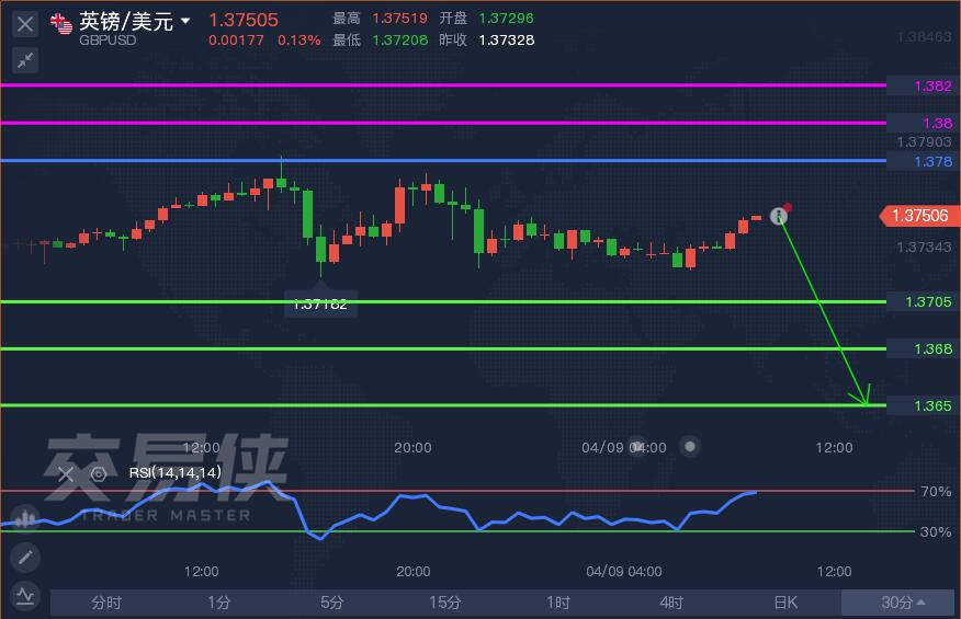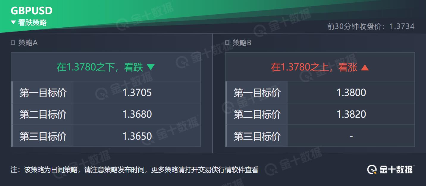 英镑兑美元多空转折点为1.3780,目前镑美在该水平下方承压,支撑位为1.3705和1.3680;若镑美回升至1.3780上方,则看涨,阻力位为1.3800和1.3820。