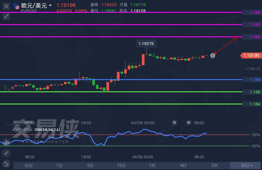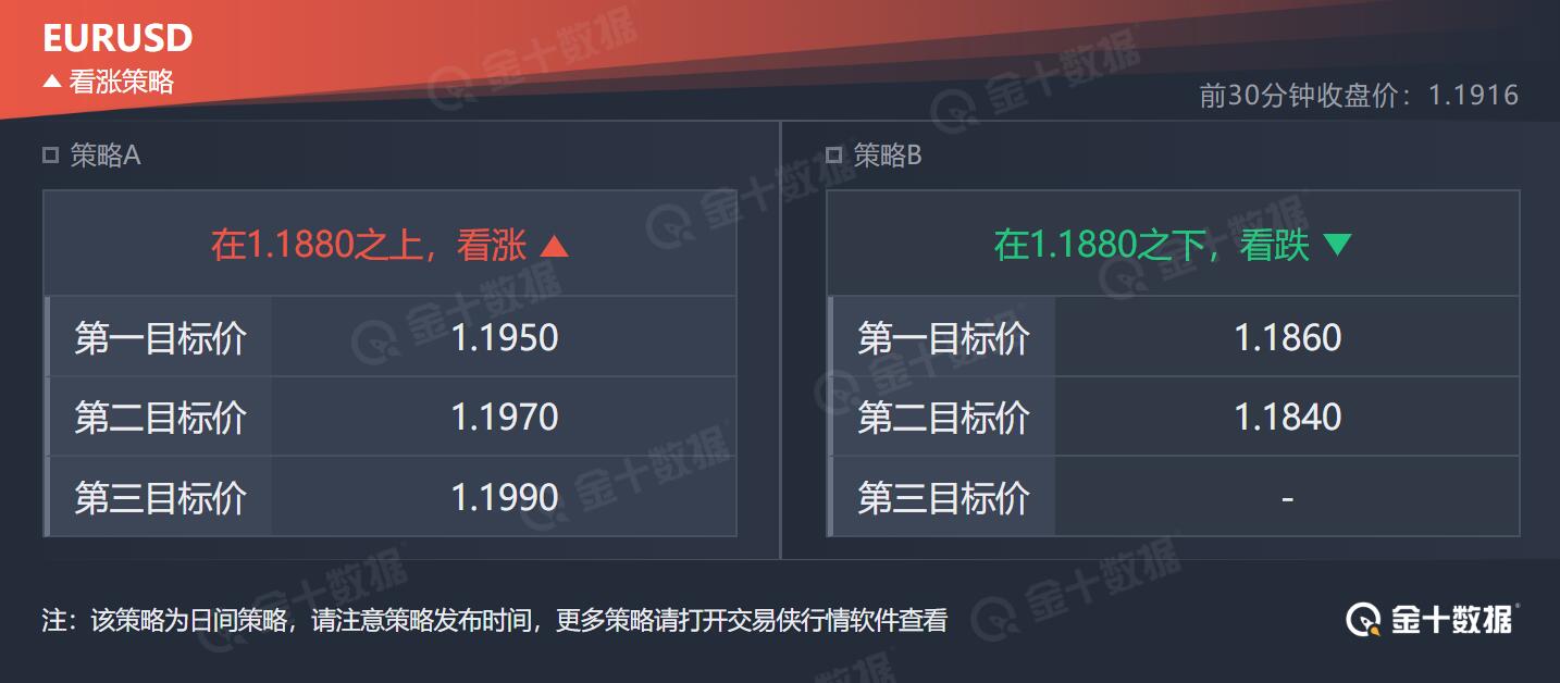 欧元兑美元目前在转折点1.1880上方看涨,阻力位为1.1950和1.1970;若欧元兑美元回落至1.1880下方,则看空,支撑位为1.1860和1.1840。