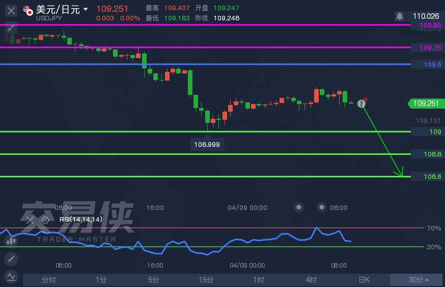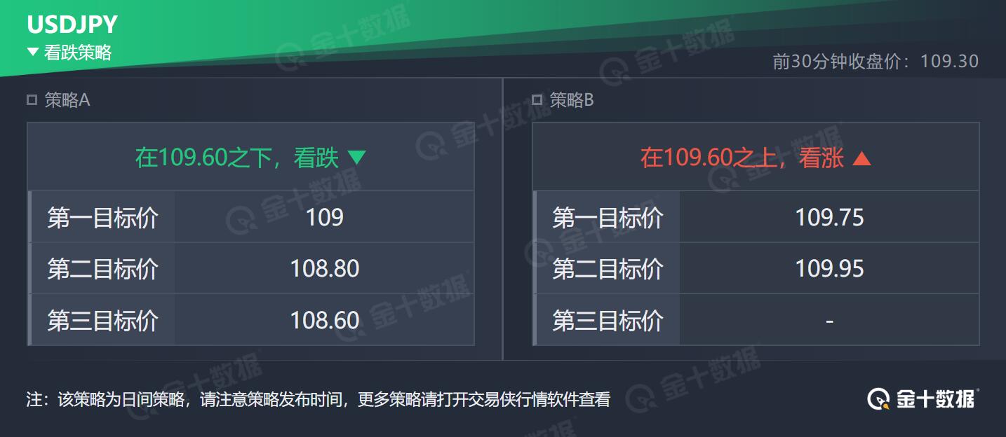 美元兑日元目前在转折点109.60下方看跌,支撑位为109和108.80;若美元兑日元回升至109.60上方,则看涨,阻力位为109.75和109.95。