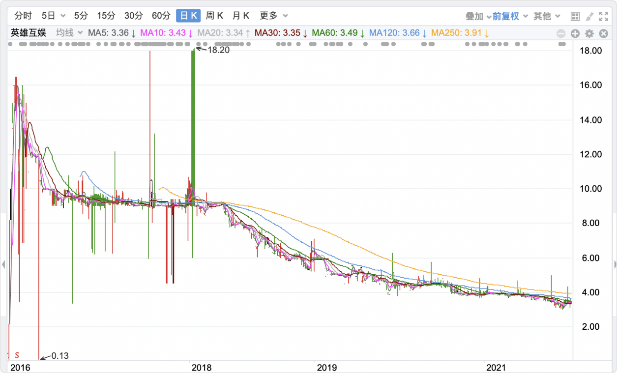 目前,英雄互娱在新三板上的股票价格已经从最高时的18元左右,一路跌破5元关口。截止9月26日收市,英雄互娱股价为3.4元,较最高点已跌超80%。