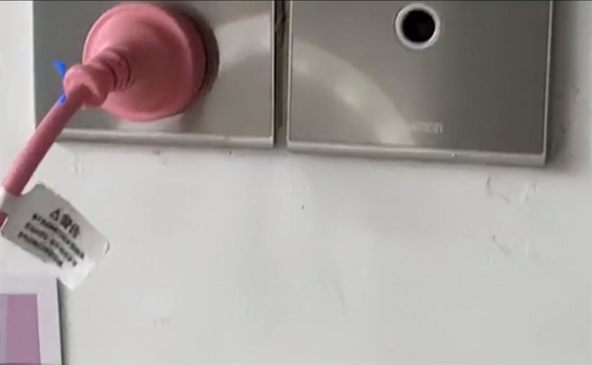据悉,这个隐秘摄像头隐藏在插座附近,伪装成了电视机电线头插孔的样子,正对着床头。