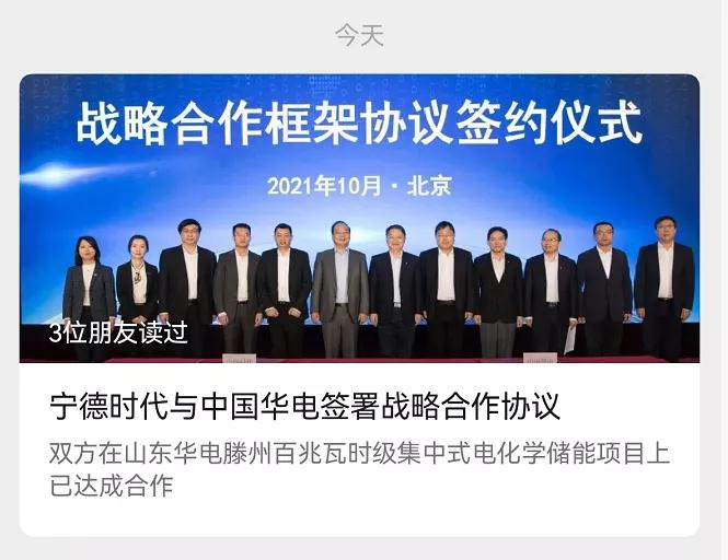 10月23日,宁德时代官方微信公众号发布消息称,10月21日,公司与国家能源投资集团有限责任公司在北京签署战略合作协议。