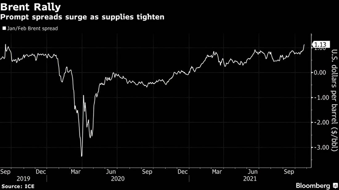 原油远近期合约的时间价差飙至数年来新高,上一次是在油价100美元的时候……