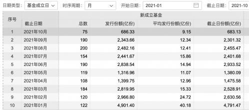 2021年已经进入四季度,今年来基金发行延续去年以来良好势头加速前行,年内新发基金2.4万亿份。