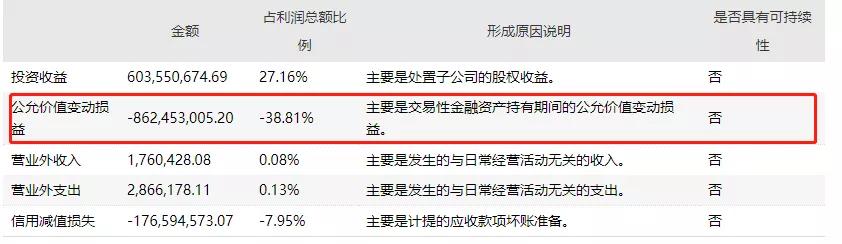 从近三个季度云南白药的业绩来看,都受到了一个指标的大幅影响,那就是:非经常性损益。而这笔损益主要来自交易性金融资产持有期间的公允价值变动损益。从三季报来看,该笔损失的规模已经达到了15.5亿元之巨。
