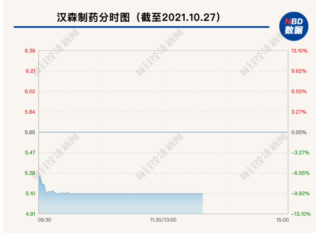 汉森制药今日(27日)开盘跌停,截至发稿,股价依旧保持跌停,报5.09元,最新总市值为25.6亿元。
