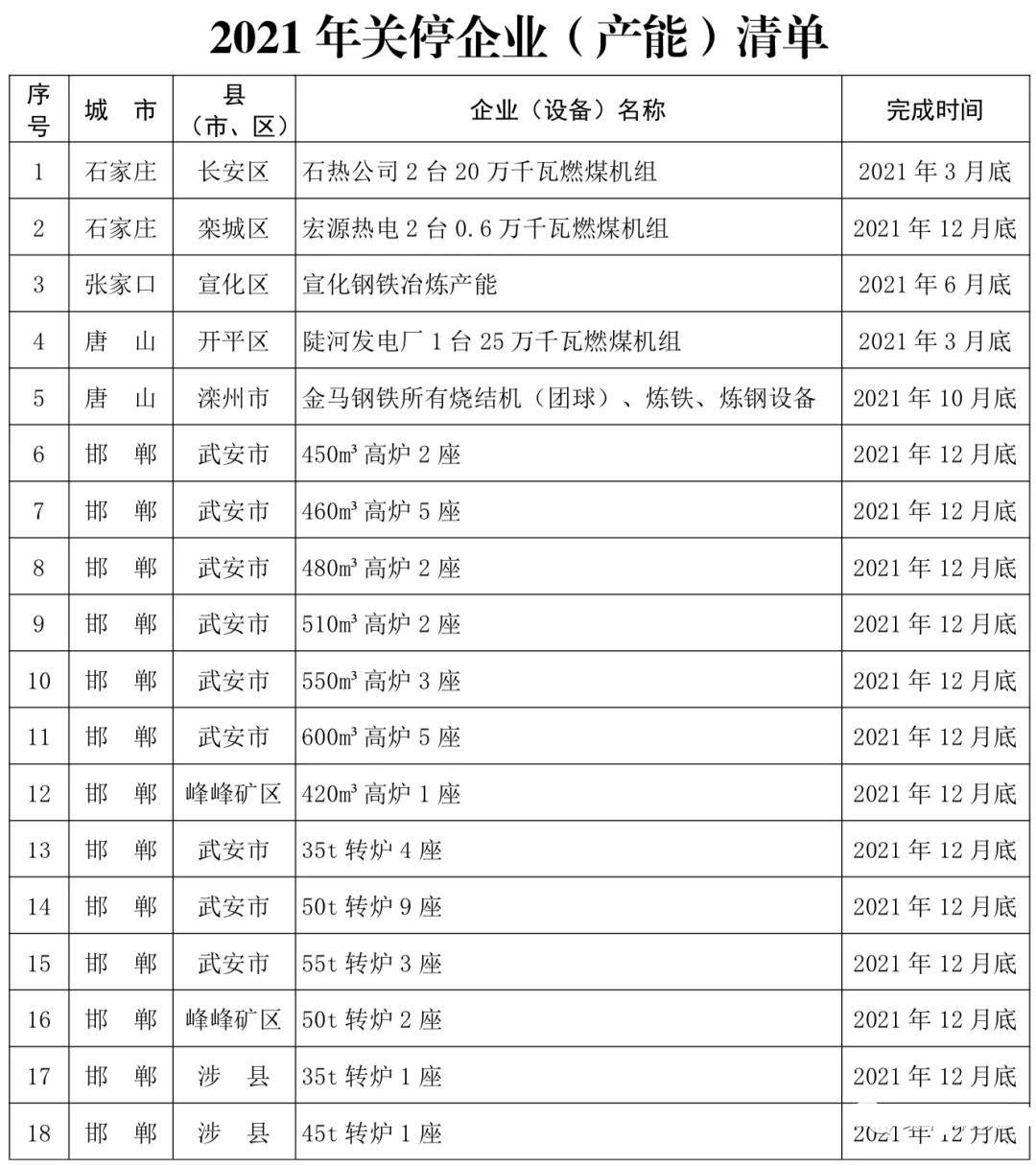 原标题:河北省2021年关停钢企(产能)清单出炉