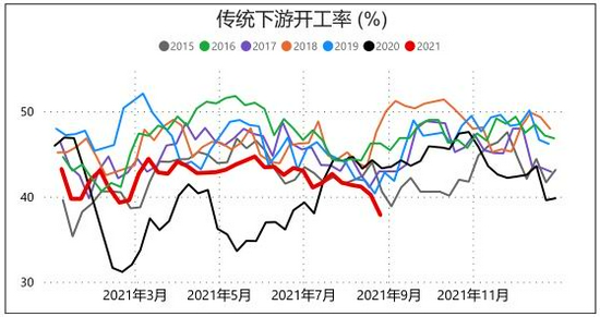 传统下游方面,受原料价格高企和需求持续偏弱影响,近期开工负荷下滑较多。