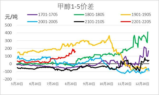 受现货季节性累库和01预期较强影响,01目前升水现货,1-5正套走势。