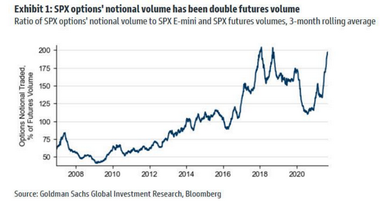 个股期权9月至今的名义交易量已经达到5000亿美元/日,是标的个股交易量的140%。