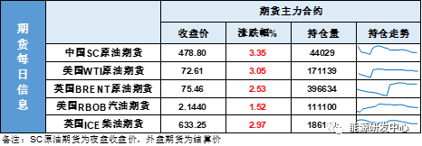 【1】WTI主力原油期货收涨2.15美元,涨幅3.05%,报72.61美元/桶;布伦特主力原油期货收涨1.86美元,涨幅2.53%,报75.46美元/桶;INE原油期货收涨3.35%,报478.8元。