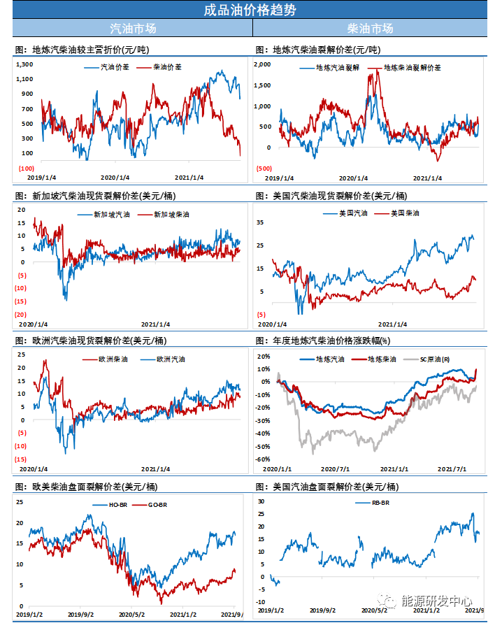 【3】美国原油库存受飓风影响持续下降达2019年9月以来最低水平;全美原油库存降至2019年9月以来最低水平,部分原因是墨西哥湾沿岸供应减少到新冠疫情前低点。毋庸置疑,这主要是飓风“艾达”所致。距离飓风过境时隔近三周,遭受影响的生产商仍在恢复当中,墨西哥湾沿岸产量仅恢复了60%。值得注意的是,在“艾达”过后,路易斯安那州Exxon Baton Rouge炼油厂因原油短缺而难以恢复正常运营。最终是美国能源部借给他们150万桶战略储备原油才缓了燃眉之急;墨西哥湾沿岸炼油厂产能利用率整体下降至72.9%,为3月以来最低。时隔“艾达”登陆近两周后,路易斯安那州Shell Norco和Phillips 66 Alliance仍处于停产状态。与此形成鲜明对比的是,落基山地区炼油厂产能利用率达96.1%,此前科罗拉多州炼油厂Suncor Commerce City于9月9日重启8月18日以来停掉的用于汽油生产的催化裂化装置